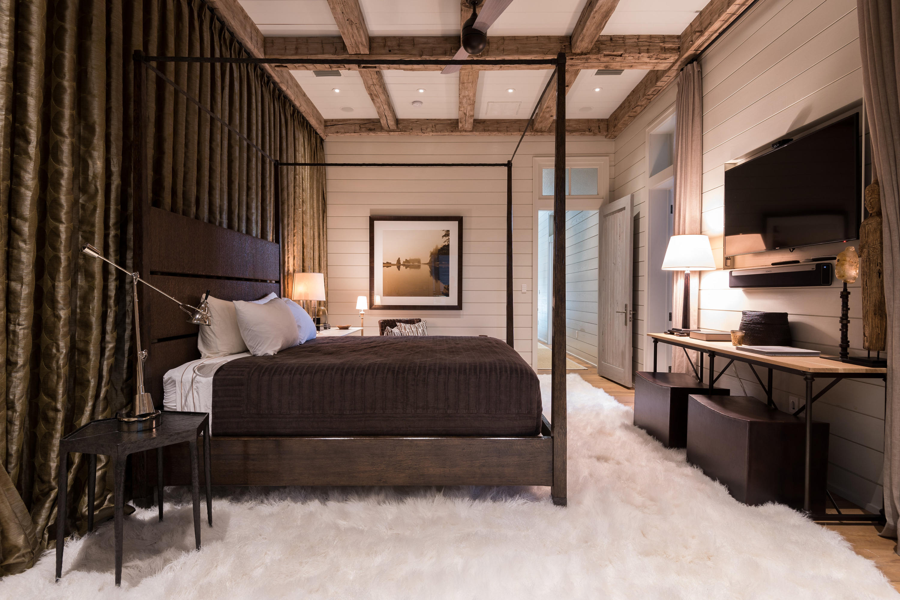 The first-floor primary suite opens directly to a calming porch overlooking the expansive private pool, inviting slow mornings with a cup of coffee and the rustle of birds in the trees. Upstairs, an additional primary suite joins two guest rooms with private baths and a cozy bunk den for sleepover guests. French doors lead to the upper porch, where a swing bench captures the breeze and adds a nostalgic sense of calm.