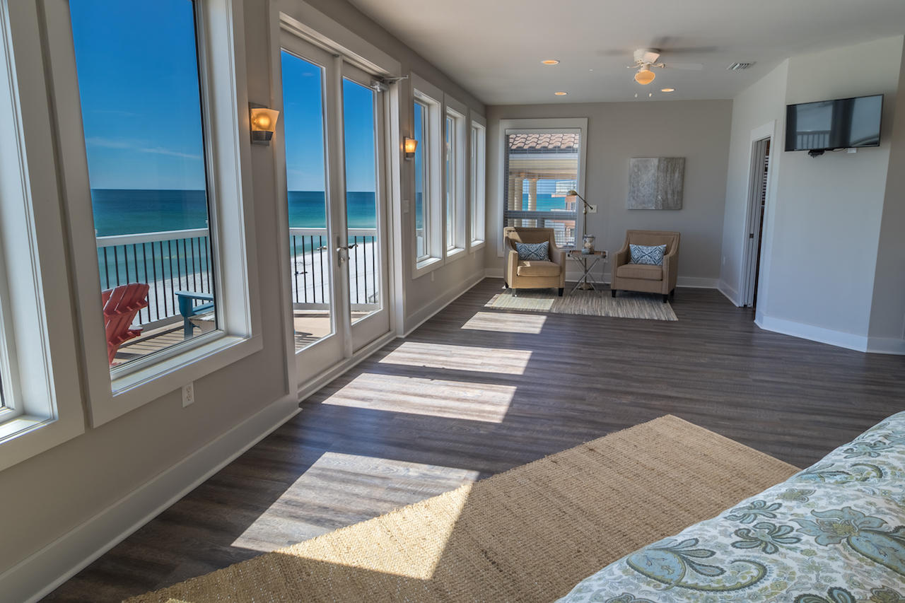 450 feet to DEEDED beach access.  ''Born to Sun'' is a 9 bedroom/10 bathroom Coastal Retreat with deeded beach access and an established history of ACTUAL rental bookings year after year.  Inquire for multi-year details. ACTUAL booked rental income of $261,000 in 2024 with owner usage.  Over $220,000 on the books so far in 2025 with owner usage.  6-seater golf cart is included!This Frangista Beach home, designed by B Design, was completed in 2016 and is built on an oversized 65 ft. by 100 ft. lot, located one block from the deeded beach access for the community.  Enjoy one of the best private pools in the entire neighborhood. All king suites have private baths that are custom detailed with tile and chrome fixtures. These suites are serviced by an elevator that carries guests and luggage to the 2nd and 3rd floors. The queen suite on the first floor has a private bath which overlooks the large private heated pool.