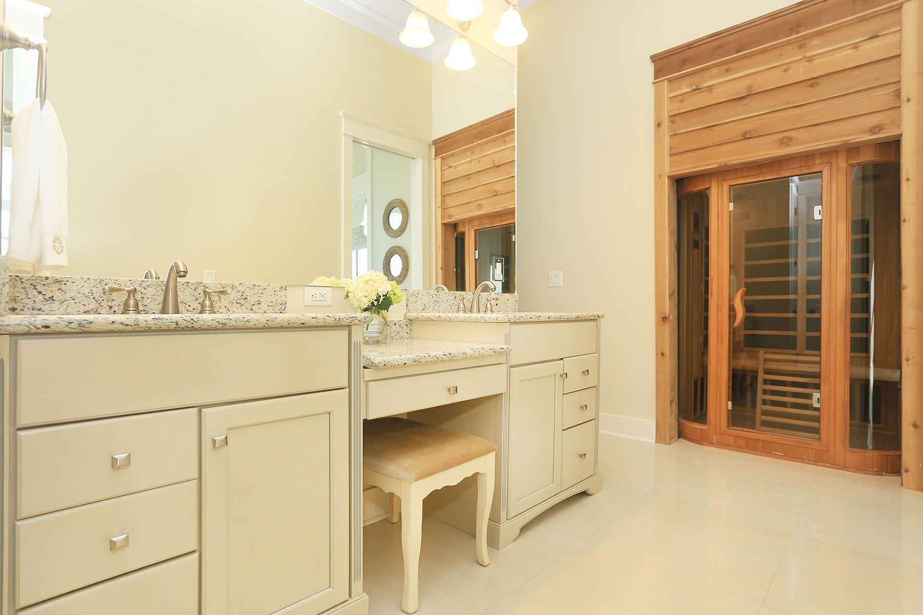 "	Spa inspired bathroom with jetted tub, large walk in shower, and dual vanities