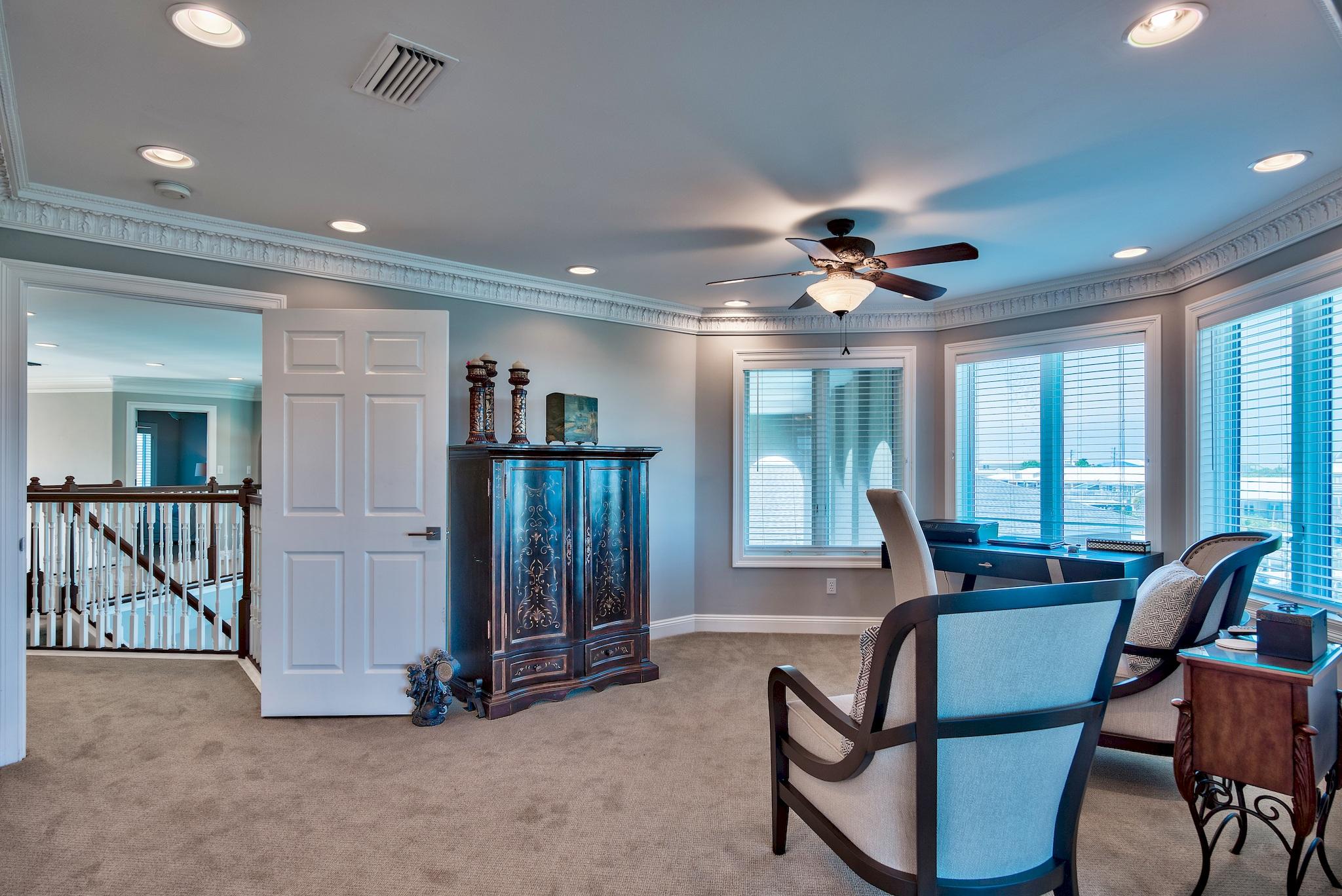 A breathtaking haven where sea and sky meet in striking harmony, this refined residence captures the essence of coastal luxury with graceful precision. A private elevator rises to a marble foyer that immediately sets a tone of sophistication, opening to a home where sweeping views of the East Pass, Gulf of Mexico and Destin Harbor unfold in every direction.With 2,660 square feet of thoughtfully curated living space, the layout offers both a family room and a living room, each positioned to frame a different postcard panorama. One showcases the East Pass, gulf and celebrated Destin bridge; the other looks toward the ever-charming harbor, creating two distinct atmospheres for relaxing, entertaining or simply watching the water shift with the light.The elevated master bedroom, enhanced during construction for grander scale and comfort, commands sunrise and sunset views through floor-to-ceiling windows. Every bedroom shares this remarkable vantage point, allowing nature's rhythm to become part of daily life. Throughout the home, high-end finishes create an environment of ease and elegance, including electric storm shutters, immaculate hardwood floors, a cozy gas fireplace, remote-controlled window shades and a surround-sound system that gently fills each space.
