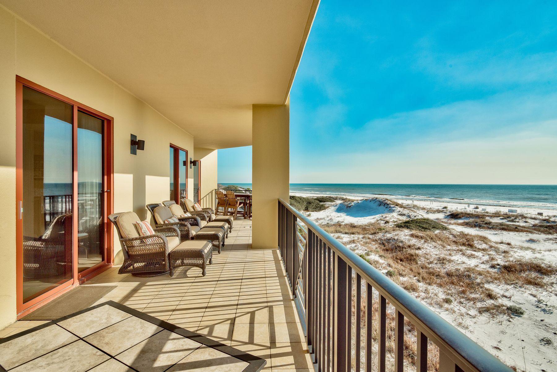 Gaze out across undulating dunes to the sparkling Gulf of Mexico or enjoy uninterrupted lake views from your own private balcony with this luxury condo at Sanctuary by the Sea. 1500 feet of frontage on Big Redfish Lake and 650 feet of beach on the Gulf of Mexico are just some of the priceless features that owners can look forward to. This high-end beach home lives large with a bonus room/office plus a media room currently furnished with three beds. This elegant condo is bright and spacious, from the airy 10-foot ceilings with crown molding to rich travertine floors gracing the living room. Note the corner feature fireplace and the handy wet bar - perfect for mixing sunset cocktails.The well-planned kitchen is generous, with rich granite countertops and a range of cabinets and appliance