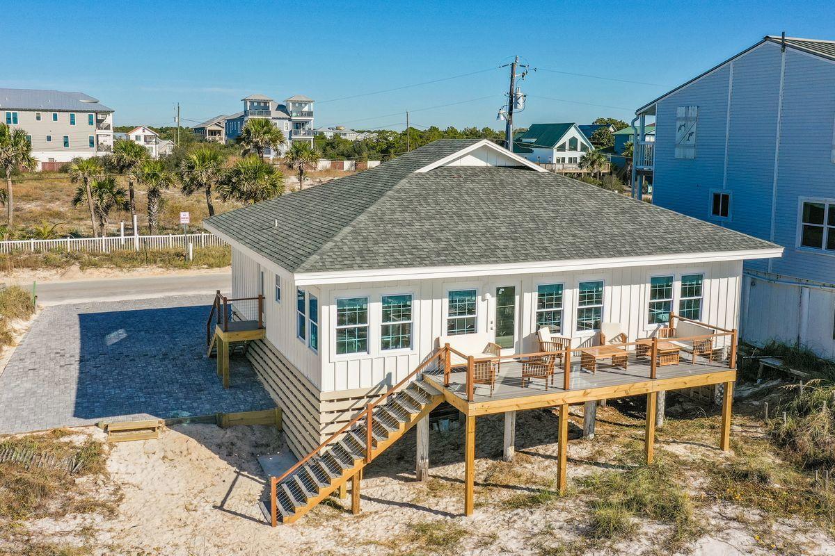 Fully Renovated Gulf-Front Cottage! This inviting Inlet Beach home has been completely remodeled and is being sold fully furnished. The home is open, bright, and offers several windows with stunning views. Elegant finishes include hardwood floors, shiplap walls, beautiful tile showers, and a sophisticated kitchen with granite countertops and high-end stainless steel appliances. Wake up to water views from the master bedroom, and enjoy sunrises and sunsets from an outdoor patio that overlooks the gulf. Located right on the water, this is a perfect opportunity for a primary or secondary home buyer looking for easy beach access for swimming, fishing, and all other aquatic activities.