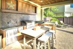 The gourmet kitchen is equipped with double ovens, gas cooktop with vent hood and butler's pantry designed for both functionality and style. Next to the gourmet kitchen, an expansive covered porch offers ample space to unwind, entertain, or dine al fresco. A grand panel slider door seamlessly unites these spaces, enhancing the flow of indoor-outdoor living.