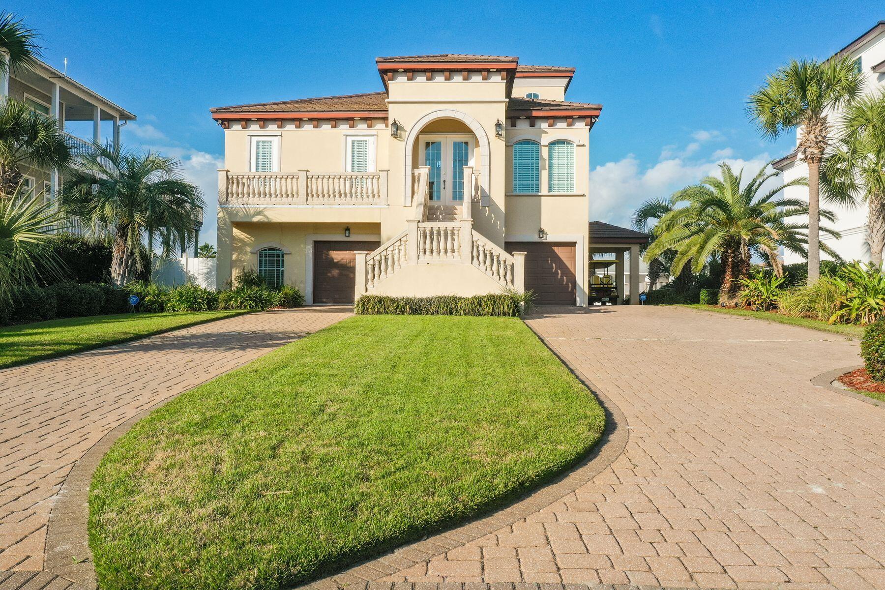 This amazing Mediterranean villa located in  One of Destin's favorite neighborhoods, Destiny West is a gated community situated directly across Scenic 98 from the stunning white sand beaches and sparkling waters of the Emerald Coast! Besides the beach, Destiny's amenities include a clubhouse, fitness center, swimming pool, hot tub, tennis, basketball court and gated access. This home provides luxury, conveniences and a practical floorplan well suited to modern lifestyles! Made of ICF construction and located on a cul-de-sac, The primary living area is on the first floor, plus the property offers incredible outdoor living, dining, relaxing, and entertaining spaces surrounding the gorgeous salt-water pool.
