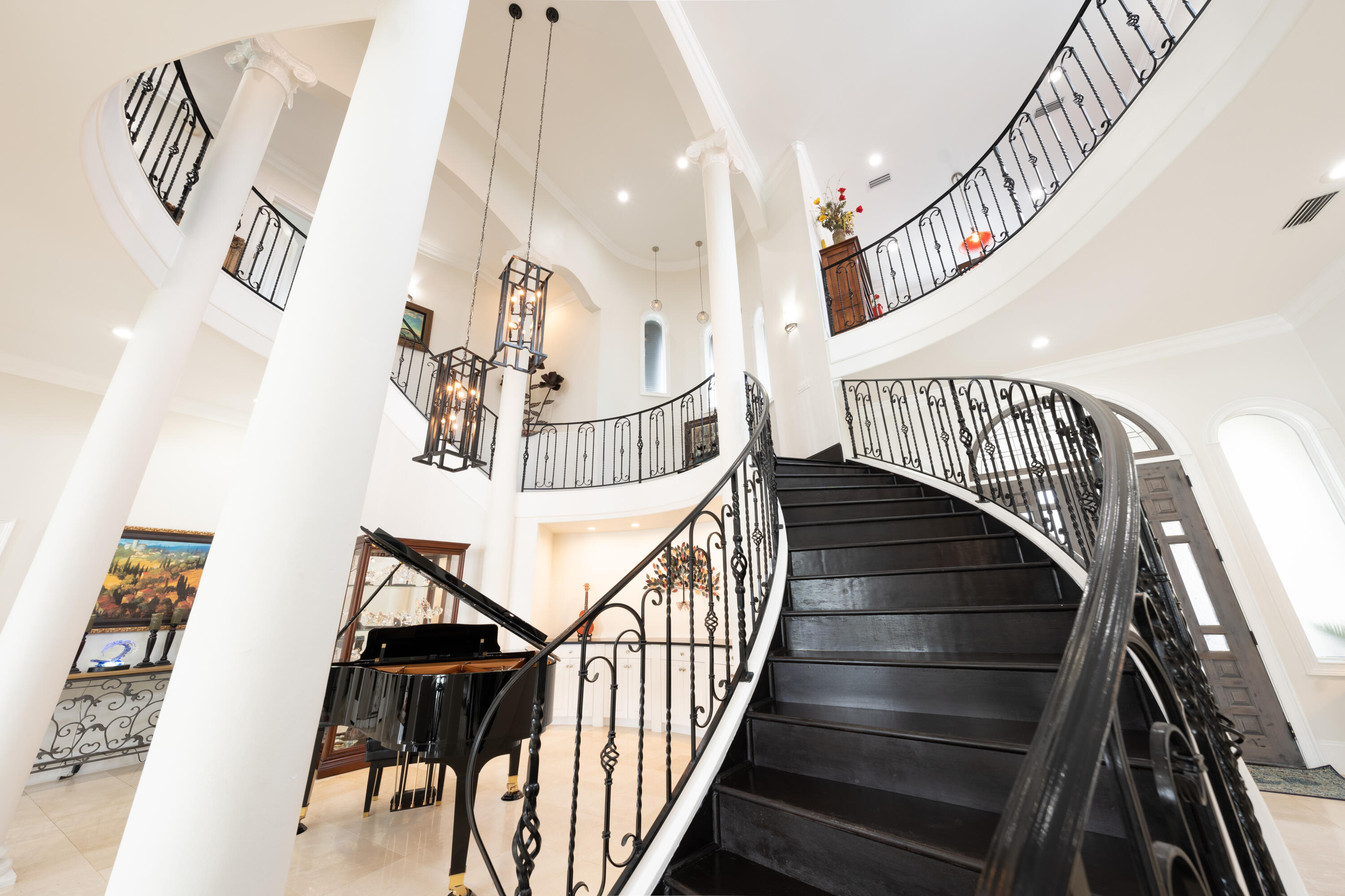 This passage describes a modern American home designed to evoke a sense of wonder, with exquisite finishes and breathtaking views of the Grand Lagoon from all angles. The property has 106 feet of deep-water frontage, a backyard dock, and a heated pool that offers indoor-outdoor living. The owners recently installed a changing room for your convenience when you are lounging around at the pool. The chef's kitchen features a waterfall black-honed granite center island and other high-end features like double ovens and a subzero. The main floors are adorned with marble of various depths and colors, while the master and second levels have contrasting black wood floors. The 3-car garage provides ample parking space and a circle drive with room for more parking as needed.