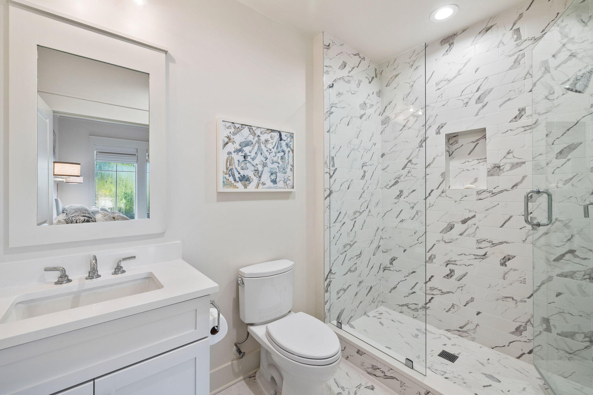 Poised within one of Inlet Beach's most refined enclaves, 63 Grande Pointe is a study in balance--architectural precision softened by the rhythm of coastal life. This 3,386-square-foot residence pairs timeless design with modern intent, offering five bedrooms and four baths across light-filled spaces that feel both expansive and intimate. Sunlight moves easily through the main living areas, revealing layers of craftsmanship in every finish and fixture. The open floor plan encourages connection, yet private suites throughout the home create a sense of retreata design equally suited for quiet mornings or full gatherings of family and friends.