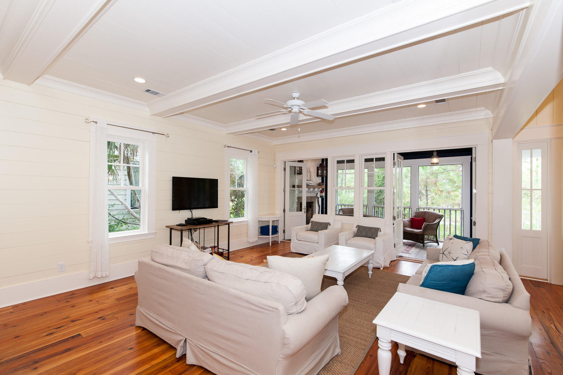 Golf cart included! This turnkey family retreat is just 1 house from the resort-style pool, pickleball, tennis, and 24/7 gym--amenities that feel like your own. The oversized yard is a true showstopper, featuring a screened lanai, outdoor kitchen, and rare space prepped for a future pool and cabana. Inside, coastal elegance abounds with shiplap, a linear fireplace, and a flexible floor plan with bonus rooms perfect for a dining room, playroom, or bunk room. This ultimate 'Park & Play' location offers the freedom of kids biking to the playground and adults enjoying quick golf cart access to 30A's beaches, dining, and shopping. Enhanced curb appeal with working shutters and a gas lantern welcomes you home. The interior features designer details like custom millwork, custom lighting, stacked kitchen cabinetry, a hot water dispenser, and an updated bathroom vanity. Custom window treatments convey. Enjoy "closet-rich" deep storage and a boutique-style primary closet.